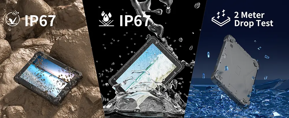 The IP67 rating means your tablet can be submerged in water up to 1 meter for 30 minutes without any damage. Whether it’s rain, snow, or accidental drops into water, our rugged tablets are designed to keep working in wet conditions.